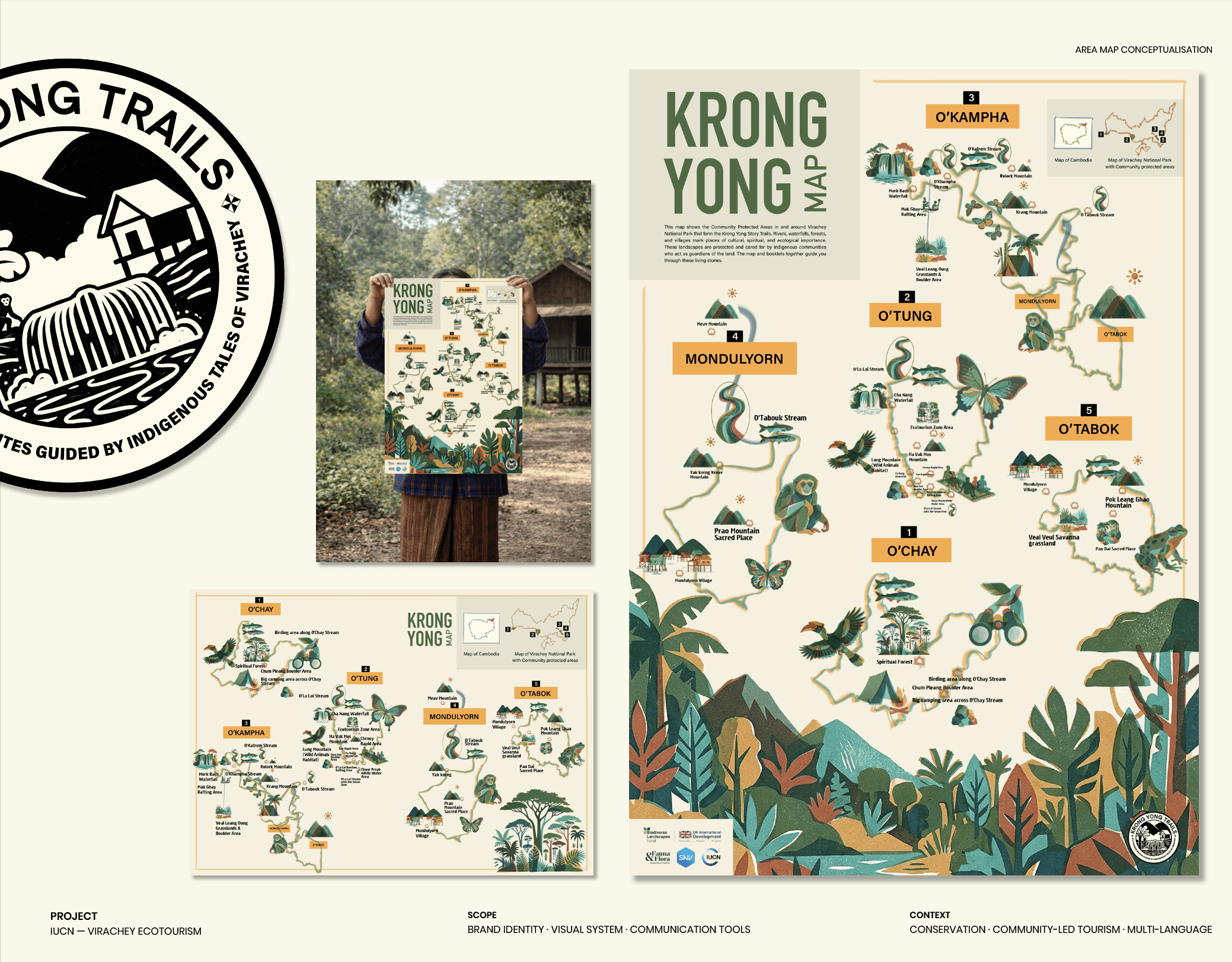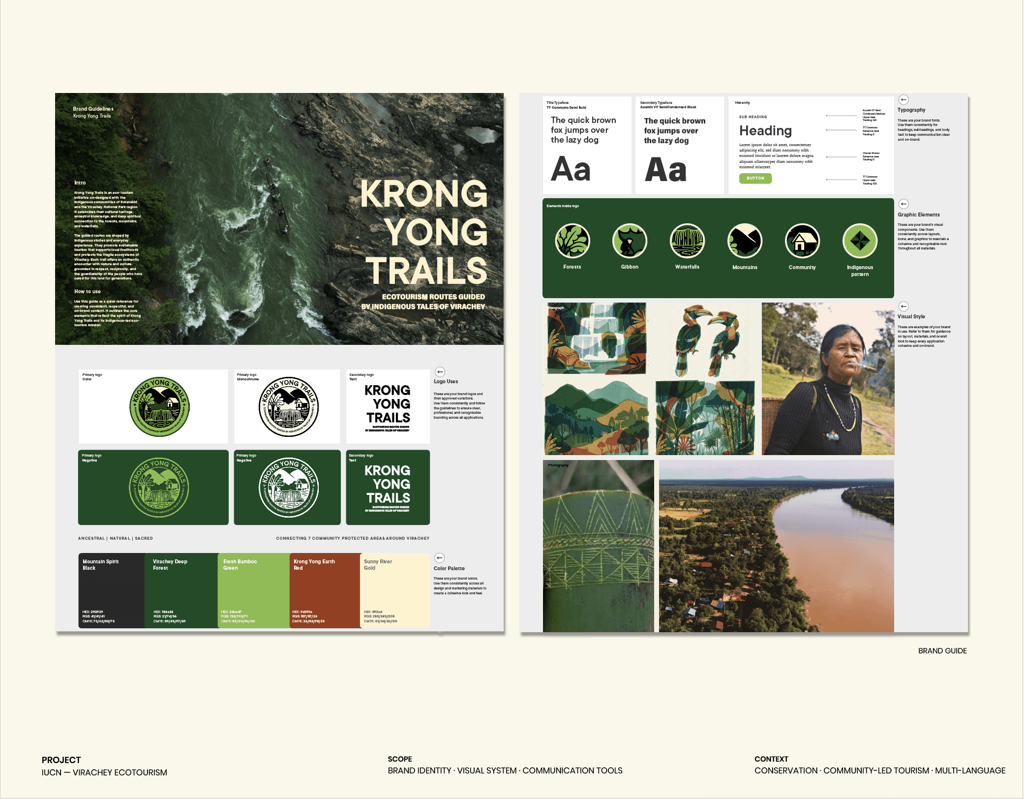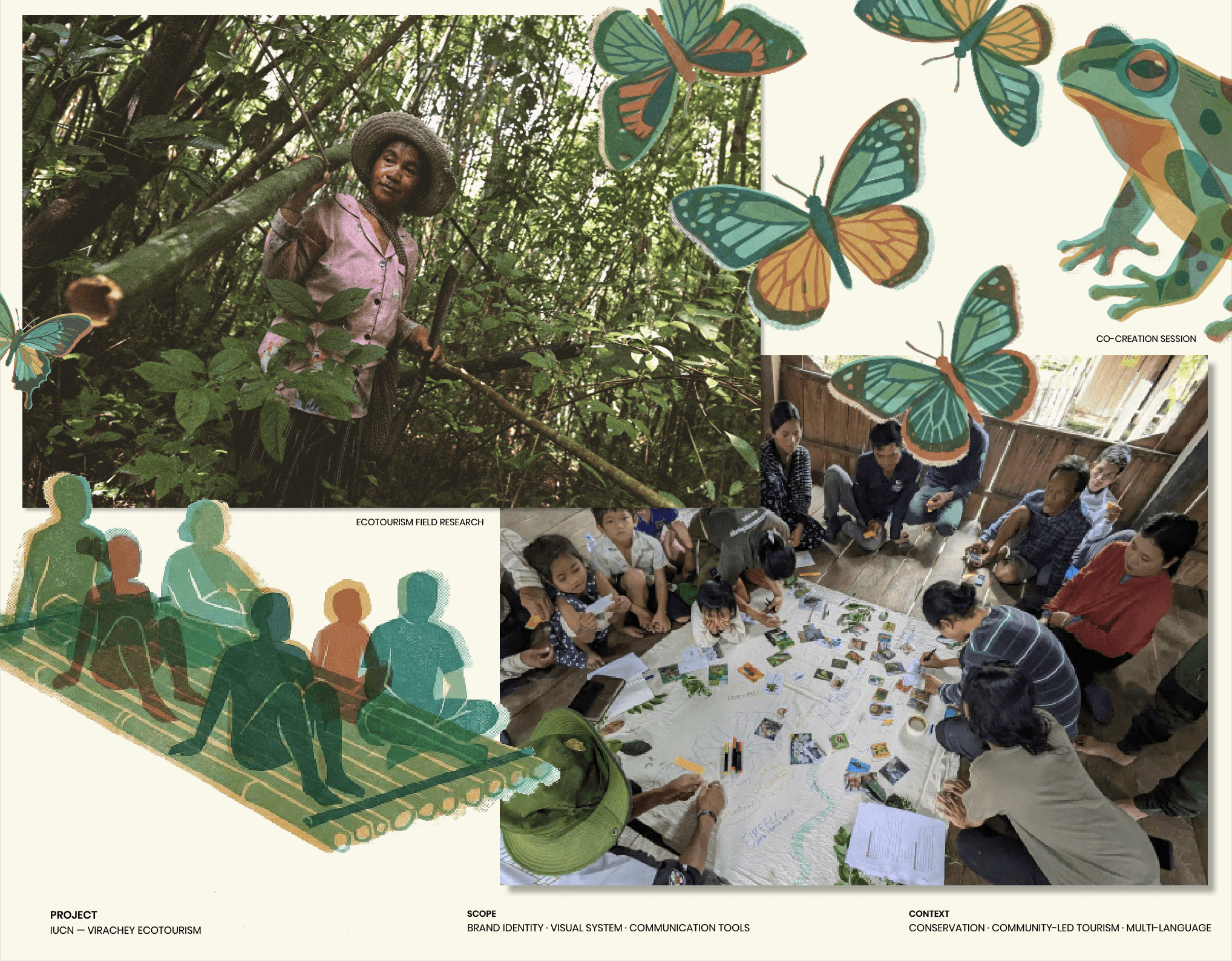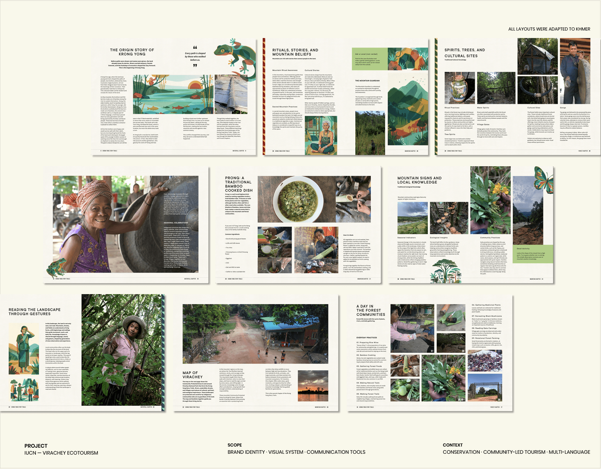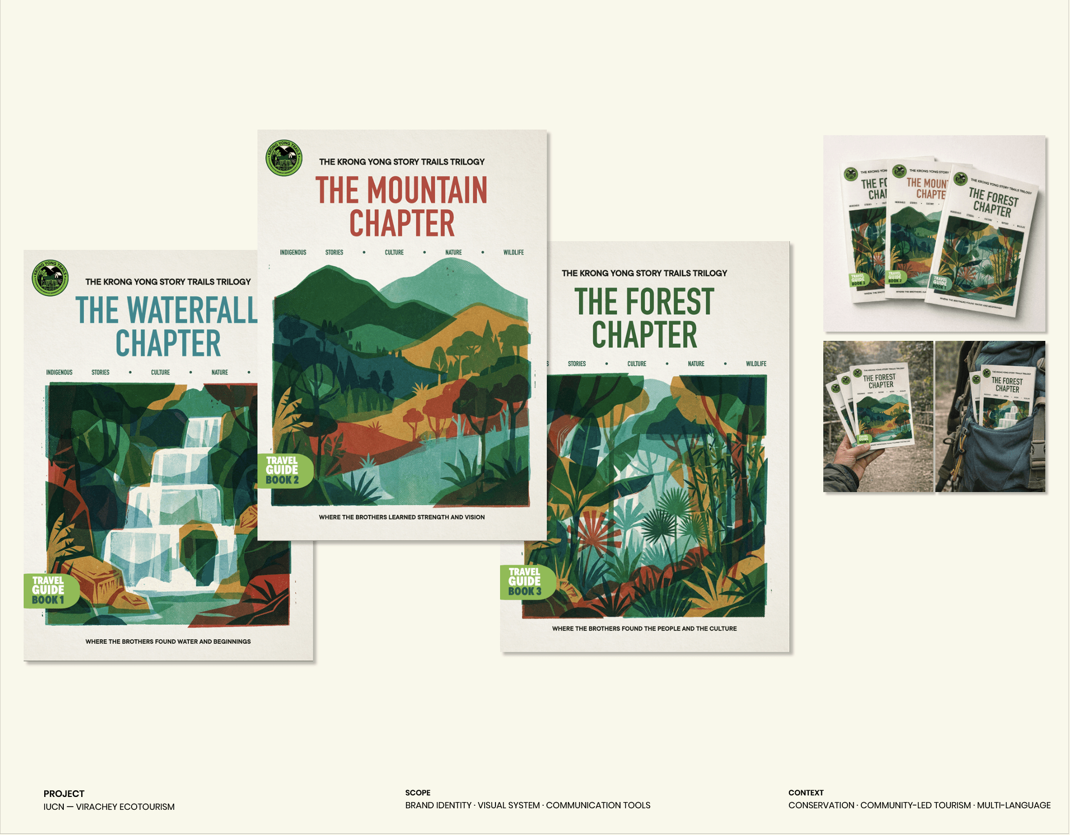 How can an ecotourism brand be truly owned by Indigenous communities while shaping respectful, sustainable visitor behaviour? → By leading a co-creation process with Indigenous leaders across seven ethnic groups, ensuring the brand is rooted in community ownership and cultural knowledge. The identity builds local pride while guiding visitor engagement through storytelling, tradition and ecological awareness. I developed a cohesive visual system and three field-ready guide booklets that translate these principles into a clear visitor journey. The result is a scalable experience that encourages eco-conscious exploration aligned with local customs, strengthening both community ownership and sustainable tourism practices.